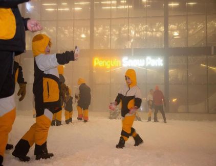پارک پنگوئن از پارک برفی در دبی الگوبرداری شده و با بارش مصنوعی برف و باران و ذراتی همانند برف و با ویژگیهای برف واقعی مثل چسباندن آنها به یکدیگر و برف بازی کردن بسیار هیجانانگیز میباشد و فرصت بسیار عالی برای افرادی است که در مناطقی زندگی میکنند که بارش برف در آنجا بسیار کم است و یا اصلاً برفی نمی بارد.